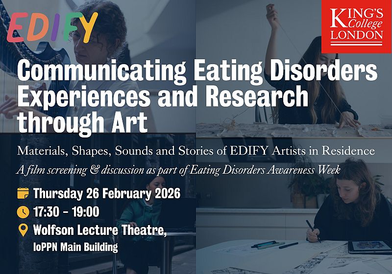 This exclusive film screening and discussion, held as part of Eating Disorders Awareness Week, tells the tale behind Stories in Shape & Sound, the EDIFY exhibition of four artists in residence as they share artistic translations of eating disorder experience and research, inspired by their connection to the EDIFY research programme.